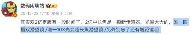 但昨天又有新爆料称,OPPO Find X9 Ultra 将搭载 10 倍镜头(230mm)。